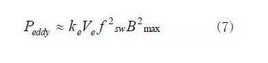 渦流損耗比磁滯損耗小得多,但隨著工作頻率的提高而迅速添加,如式(7)所示。