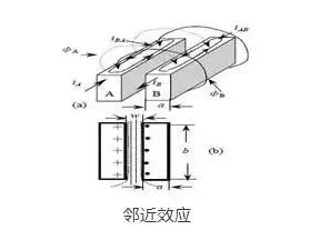 當兩個相鄰導(dǎo)體流過方向相反的電流時,相互之間會發(fā)生磁動勢,則磁動勢在對方導(dǎo)體中會發(fā)生渦流,引起損耗。