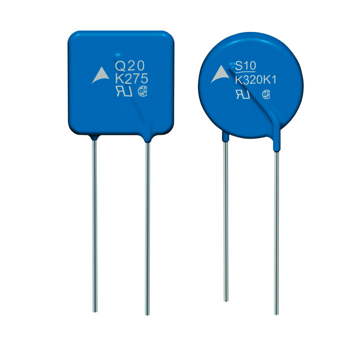 4. 壓敏電阻器(VSR)----工作電壓范圍寬(6V~3000V,分若干檔),對(duì)過(guò)電壓脈沖響應(yīng)速度快(幾納秒至幾十納秒),耐沖擊電流的能力很強(qiáng)(可達(dá)100A~20Ka),漏電流小(低于幾微安至幾十微安),電阻溫度系數(shù)低(小于0.05%/℃),價(jià)格低廉。