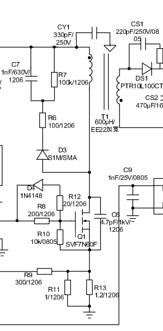 這就是實(shí)際布線(xiàn)時(shí)候的布局,大家可以參考一下,JT1是飛線(xiàn),直接把310V正電壓引入了變壓器。