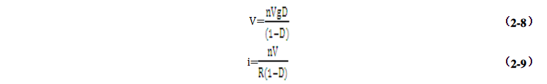 現(xiàn)在來分析它的工作原理:當Q導(dǎo)通時,二極管截止,根據(jù)電路知識可知此時VL=Vg,ic=-V/R;當Q截止時,二極管D導(dǎo)通,VL=-V/n,ic=i/n-V/R。由伏秒平衡和電容充放電平衡可得: