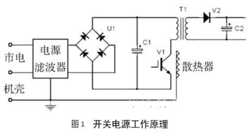 一般,對開關(guān)電源電磁兼容功能發(fā)生影響的要素詳細表現(xiàn)在以下幾點:榜首,外部噪聲影響開關(guān)電源,比如:使用電網(wǎng)傳輸進入開關(guān)電源的差模噪聲、共模噪聲干擾開關(guān)電源操控電路等等;第二,開關(guān)電源輸進變流回路的非線性形成的電流波形畸變,形成的電流諧波分量污染電網(wǎng);第三,開關(guān)電源的高頻逆變回路呈現(xiàn)的電磁噪聲。開關(guān)電源類型多元化,依據(jù)電路結(jié)構(gòu),可以將其劃分紅直流改換時以及串聯(lián)式;依據(jù)鼓勵辦法,可以將其劃分紅他人鼓勵式和自我鼓勵式;依據(jù)開關(guān)管的組合,可以將其劃分紅推挽以及單管等等??墒侨魏晤愋偷拈_關(guān)電源,都是借助開關(guān)器材關(guān)和開的時間比對傳輸電壓大小進行操控,遍及采用的操控辦法包含兩種,一是脈沖寬度調(diào)制,二是脈沖頻率調(diào)制。[2]由于開關(guān)開關(guān)電源開關(guān)頻率超過幾十乃至幾百千赫,電路的電壓改變率以及電流都說是適當大的,所以高頻整流器材以及開關(guān)器材的電流尖峰形成的諧波、高頻電壓器的電磁輻射形成的干擾等噪聲都是適當強的電磁干擾源。這些電磁干擾信號跟著開關(guān)頻率的提升、輸出功率的加大而明顯加強,會使用電源線和差模與共模的方向向外面?zhèn)鲗В草椛涞礁浇臻g,威脅其他電子設備的安全安穩(wěn)運轉(zhuǎn)。開關(guān)電源作業(yè)原理簡圖如圖1所示,表明開關(guān)電源中電磁噪聲的呈現(xiàn)和耦合途徑。