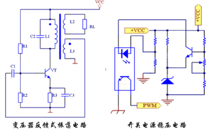 在談開關電源之前,先了解一下變壓器反應式振動電路,能發(fā)生有規(guī)律的脈沖電流或電壓的電路叫振動電路,變壓器反應式振動電路便是能滿足這種條件的電路;它由基本放大電路與一個反應回路組成,其間 C2、Ll組成一個并聯(lián)諧振選頻電路,在電路通電的瞬間VT 導通,此時在C2、Ll組成的并聯(lián)諧振電路上發(fā)生非常豐富的諧波,當外加頻率和并聯(lián)諧振電路的固有頻率相等時,電路進入振動狀態(tài),并經(jīng)過L3反應到VT的基極進一步放大,終究構(gòu)成有規(guī)律的脈沖電流或電壓輸出到負載RL上。開關電源便是環(huán)繞變壓器反應式振動電路而設計,只不過在原來的基礎上增加了一些保護和操控電路,咱們能夠用剖析振動電路的辦法來剖析開關電源。