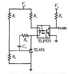 該作業(yè)原理是當(dāng)輸出電壓升高時,TL431的1腳(相當(dāng)于電壓差錯放大器的反向輸入端)電壓上升,3腳(相當(dāng)于電壓差錯放大器的輸出腳)電壓下降,光耦TLP521的原邊電流If增大,光耦的另一端輸出電流Ic增大,電阻R4上的電壓降增大,com引腳電壓下降,占空比減小,輸出電壓減小。反之,當(dāng)輸出電壓下降時,調(diào)理進程類似。