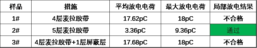 可以看到,僅有2# 5層麥拉膠帶的變壓器樣品通過了局部放電測試。