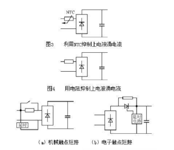浪涌會(huì)形成電源電壓波形凹陷,使得供電質(zhì)量變差,甚至?xí)绊懫渌秒娫O(shè)備的作業(yè)以及使維護(hù)電路動(dòng)作;由于浪涌沖擊整流器的輸入熔斷器,使其在若干次上電進(jìn)程的浪涌沖擊下而非過(guò)載熔斷。為避免這類(lèi)現(xiàn)象產(chǎn)生,而不得不選用更高額定電流的熔斷器,但將呈現(xiàn)過(guò)載時(shí)熔斷器不能熔斷,起不到維護(hù)整流器及用電電路的作用;過(guò)高的上電浪涌對(duì)整流器和濾波電容器形成不可康復(fù)的損壞。因此,有必要對(duì)帶有電容濾波的整流器輸入浪涌加以束縛。