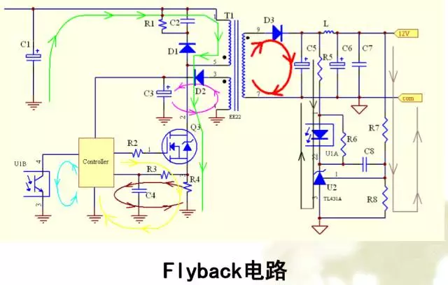 ●Y電容的連接點,講究一個“靜”,很顯然上圖Y電容最佳連接點事C1的負端,以及變壓器T1的次級7腳。